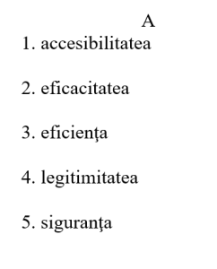 SUBIECTUL II În coloana A sunt enumerate dimensiunile calității, iar în coloana B descrierea acestora. Realizează asocierea dintre fiecare element enumerat în coloana A şi corespondentul acestuia din coloana B apoi alege varianta corectă de răspuns (15 puncte).
